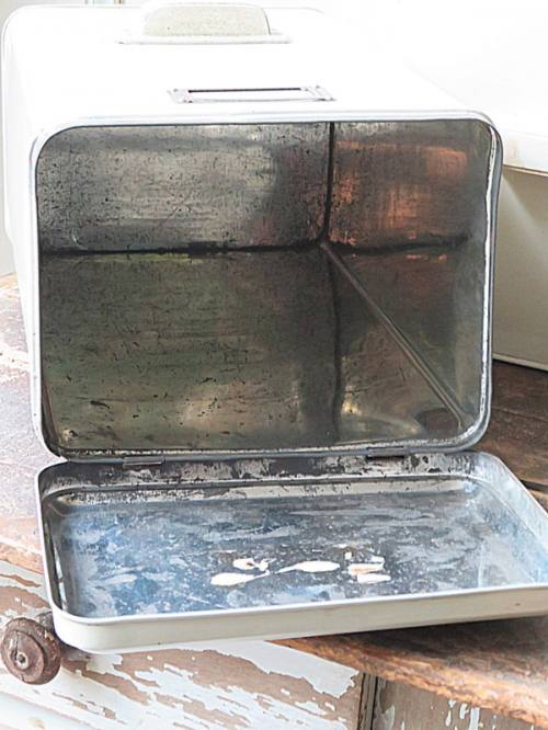 Er zat een prop krant in uit 1948, het blik waarschijnlijk nog wel wat ouder.