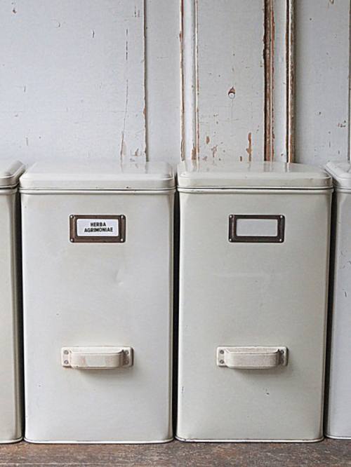 Grote melk witte blikken uit apotheek.