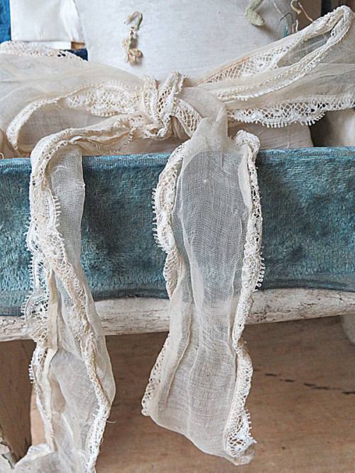 VERKOCHT 948. antiek bundel band met kant