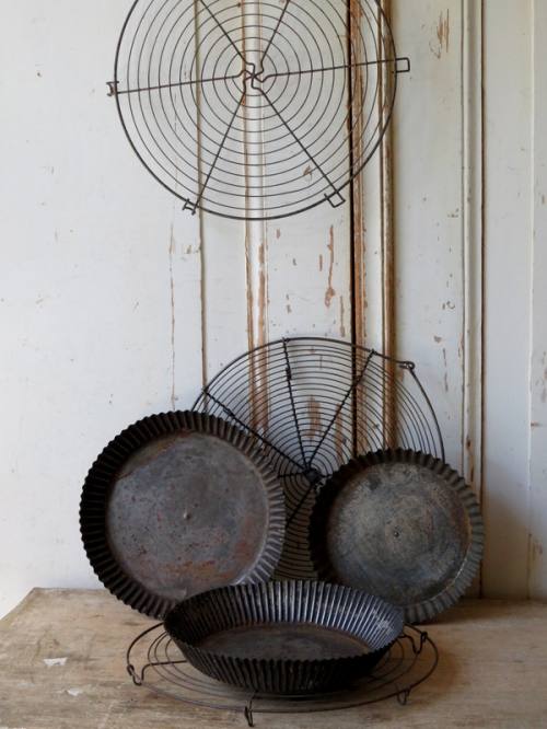 Drie taart roosters en drie bakvormen.