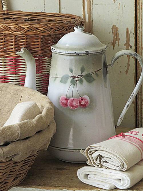 VERKOCHT 542a. Franse koffiepot met kersen