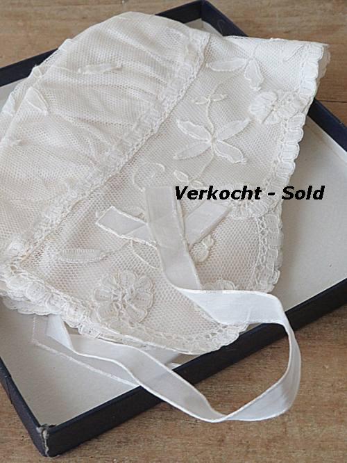 VERKOCHT 450. Brussels kant, mutsje