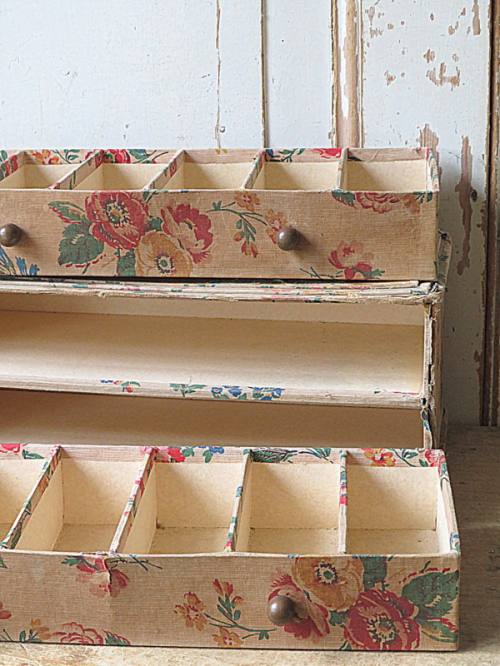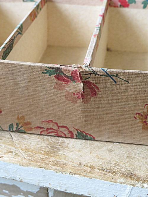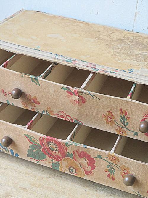 Shabby kastje met vakjes in de laden.