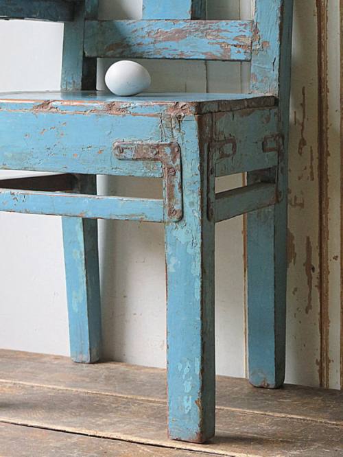 Hemels blauw stoeltje met zij tafeltje.