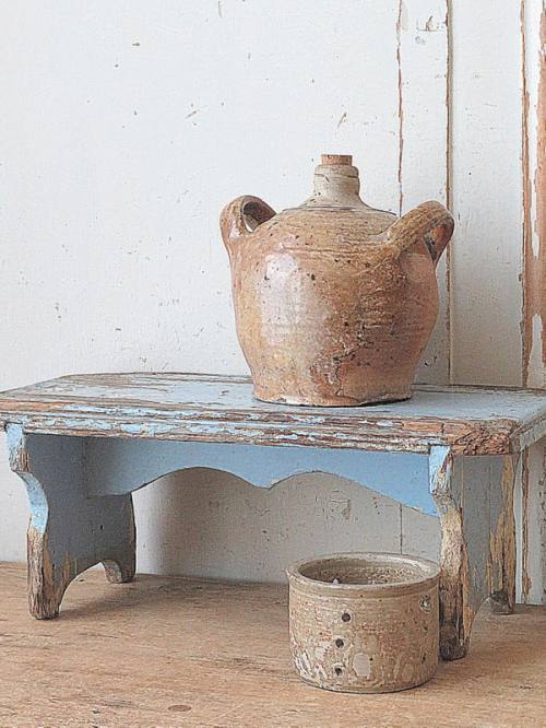 Authentiek krukje in sleets licht blauw.