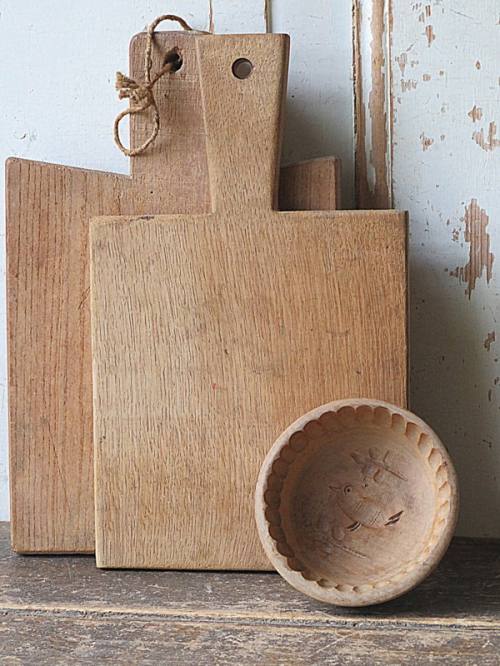 Oude Franse snijplanken en een grote boter mal.