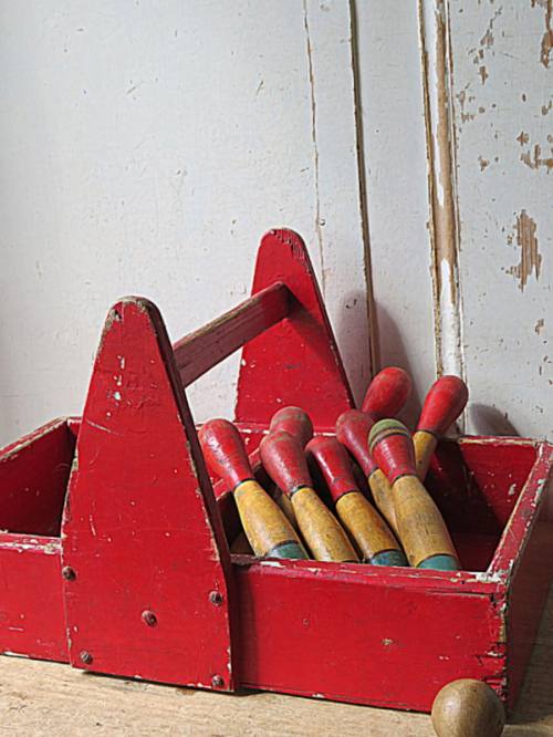 Rode vakkenbak en 9 Franse kegels.