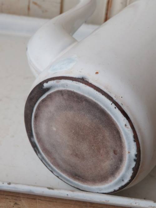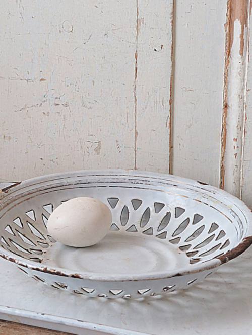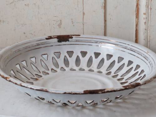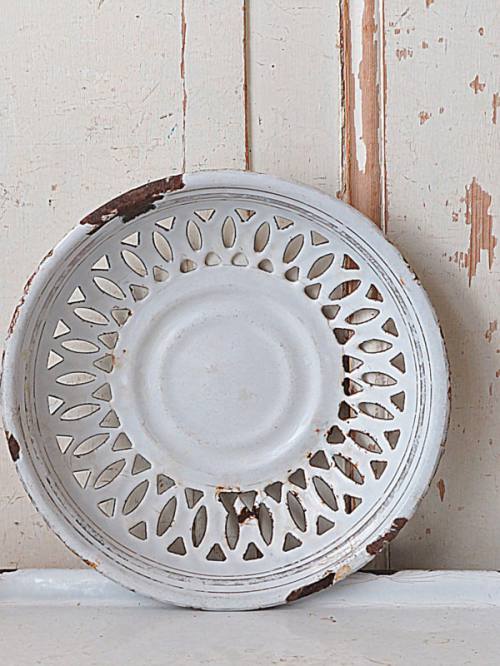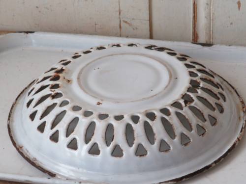 Wit emaille schaal met sporen.