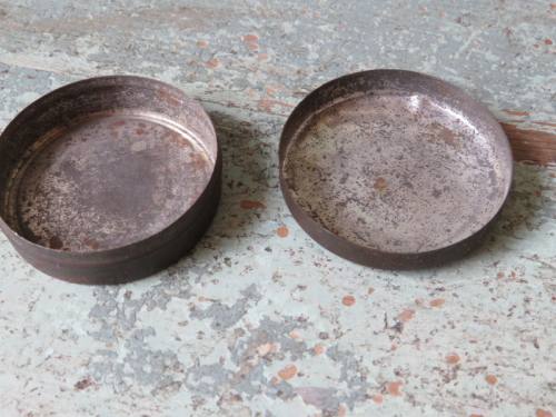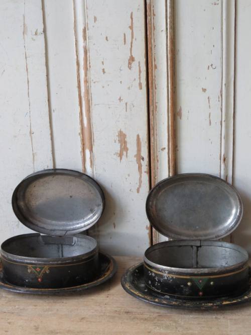 VERKOCHT 110. antieke koekblikken op schaal
