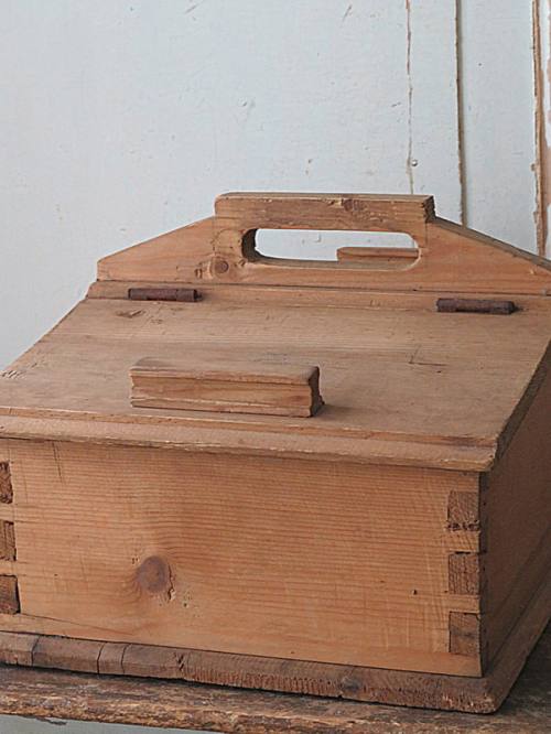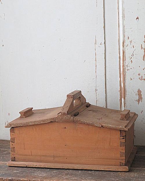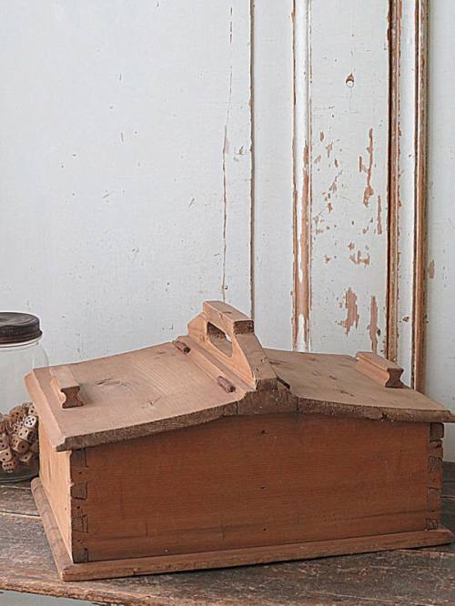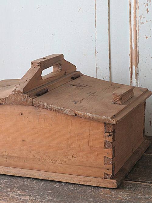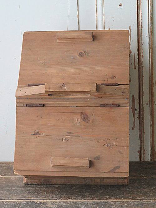 Handgemaakt, primitieve houten schuif kist met lief hartje.