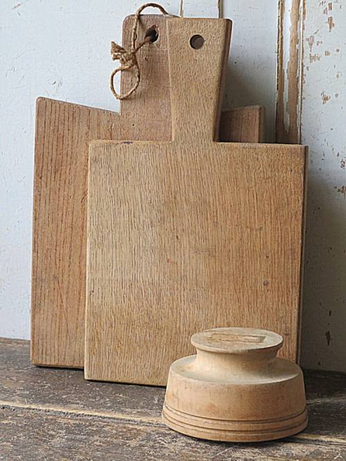 Oude Franse snijplanken en een grote boter mal.
