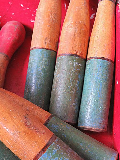 Rode vakkenbak en 9 Franse kegels.